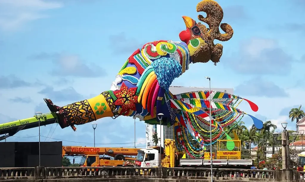 A neutralização de CO₂ também abrange o famoso “Galo Gigante”, erguido sobre a Ponte Duarte Coelho. Com cerca de oito toneladas e 32 metros de altura, a escultura também tem suas etapas de produção e montagem monitoradas, a fim de garantir a compensação ambiental adequada.